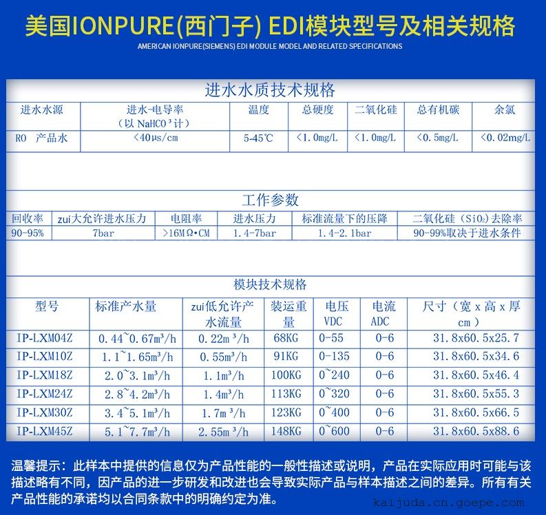 美国西门子IONPURE LXM30Z水处理EDI模块