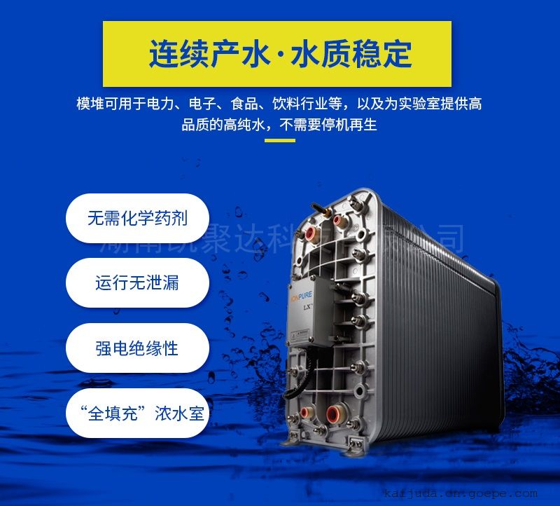 针对工业应用而开发 IONPURE LX-Z 工业型膜堆利用连续电去离子技术 (CEDI) 生产高纯水,其产水水质等同甚至优于混床出水。IONPURE 膜堆可极其可靠的为电力、电子 HPI/CPI、食品和饮料行业,以及实验室提供 高品质的高纯水且不需要停机再生。